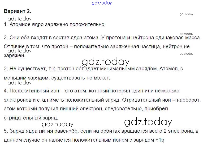 Ответы к СР №25. Строение атомов Решение к самостоятельным работам вариант-2 Контрольным и самостоятельным работам по Физике для 8 класса Громцева Экзамен УМК 2017