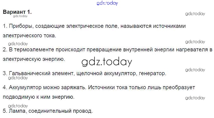 На страницах сайта gdz.today вы найдете учебный и вспомогательный материал, направленный на улучшения знаний школьной программы. ГДЗ - онлайн мир знаний СР №28. Электрический ток Решение к самостоятельным работам вариант-1 Контрольным и самостоятельным работам по Физике для 8 класса Громцева Экзамен УМК 2017