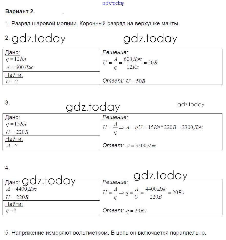 На страницах сайта gdz.today вы найдете учебный и вспомогательный материал, направленный на улучшения знаний школьной программы. ГДЗ - онлайн мир знаний СР №31. Электрическое напряжение. Единицы напряжения. Вольтметр. Измерение силы тока Решение к самостоятельным работам вариант-2 Контрольным и самостоятельным работам по Физике для 8 класса Громцева Экзамен УМК 2017