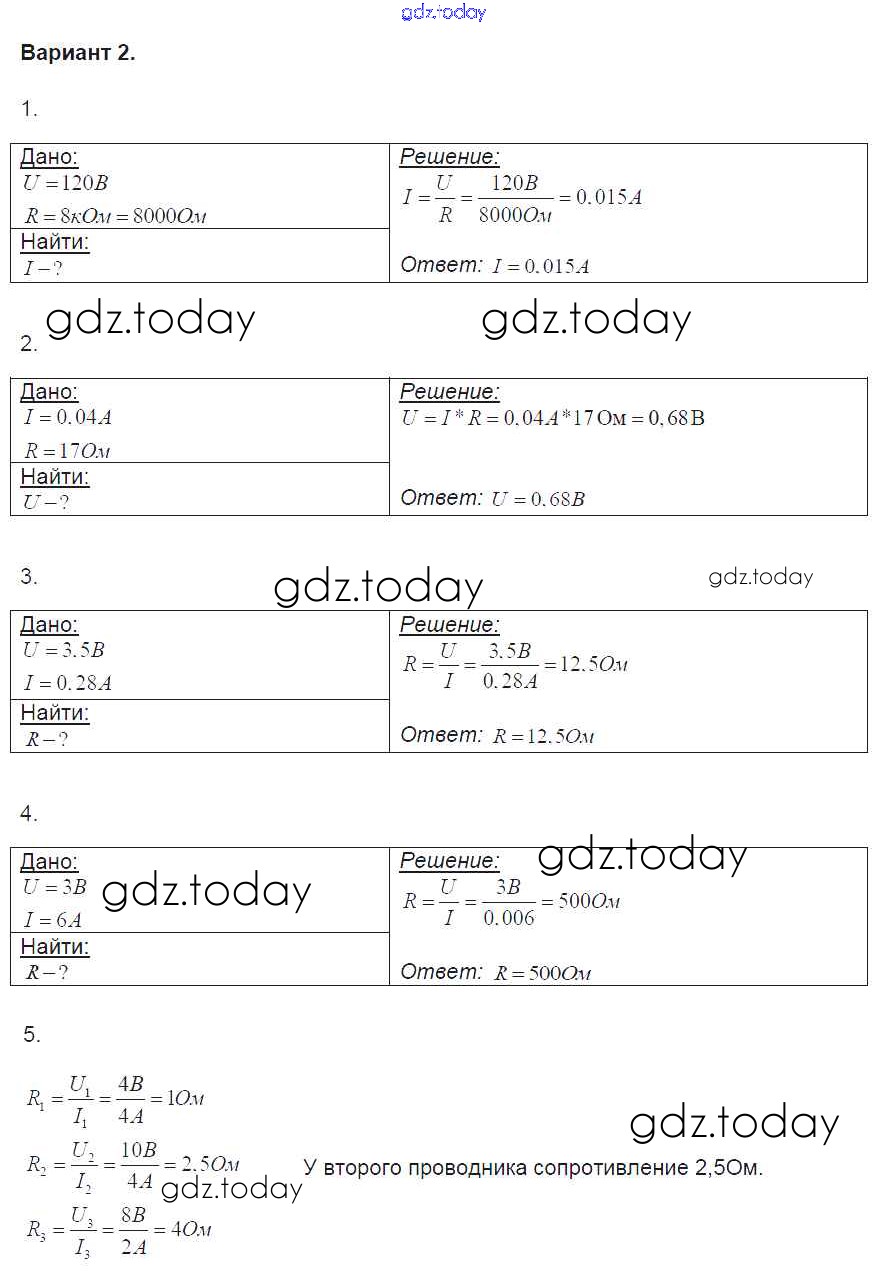 На страницах сайта gdz.today вы найдете учебный и вспомогательный материал, направленный на улучшения знаний школьной программы. ГДЗ - онлайн мир знаний СР №33. Закон Ома для участка цепи Решение к самостоятельным работам вариант-2 Контрольным и самостоятельным работам по Физике для 8 класса Громцева Экзамен УМК 2017