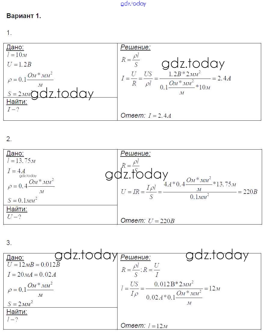 Ответы к СР №34. Примеры на расчет сопротивления проводник, силы тока и напряжения. Реостаты Решение к самостоятельным работам вариант-1 Контрольным и самостоятельным работам по Физике для 8 класса Громцева Экзамен УМК 2017