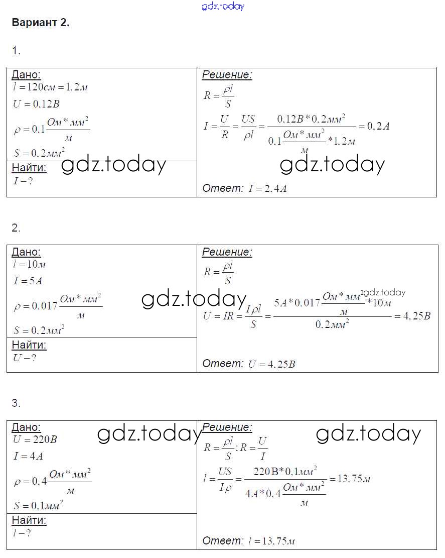 Ответы к СР №34. Примеры на расчет сопротивления проводник, силы тока и напряжения. Реостаты Решение к самостоятельным работам вариант-2 Контрольным и самостоятельным работам по Физике для 8 класса Громцева Экзамен УМК 2017