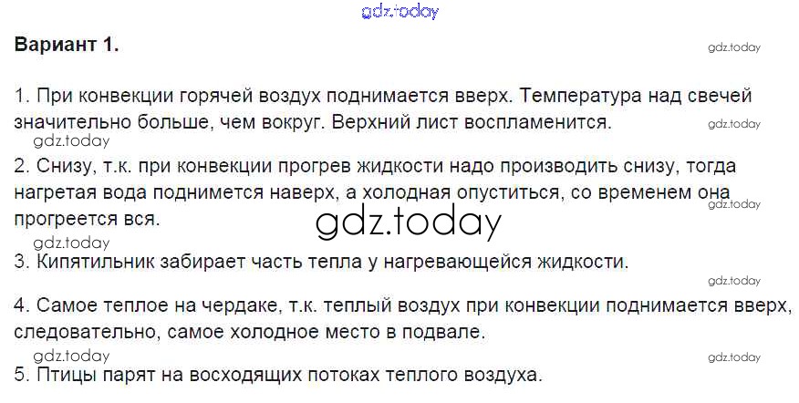 Ответы к СР №4. Конвекция Решение к самостоятельным работам вариант-1 Контрольным и самостоятельным работам по Физике для 8 класса Громцева Экзамен УМК 2017