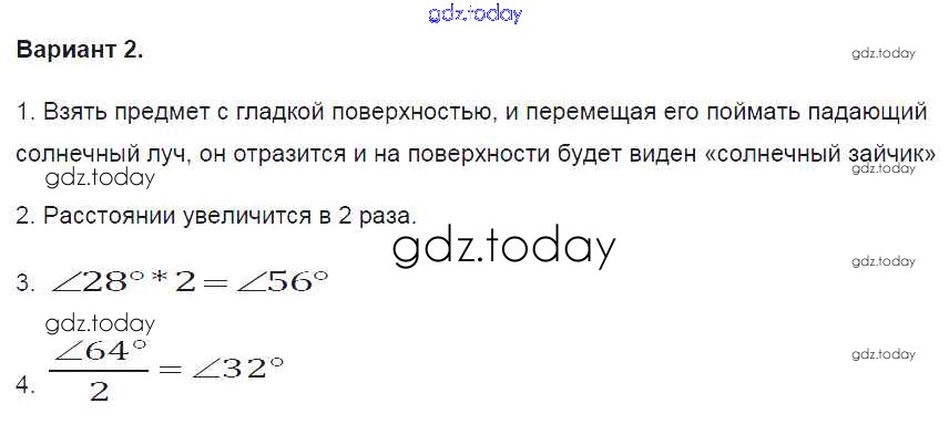 На страницах сайта gdz.today вы найдете учебный и вспомогательный материал, направленный на улучшения знаний школьной программы. ГДЗ - онлайн мир знаний СР №46. Отражение света. Законы отражения. Плоское зеркало Решение к самостоятельным работам вариант-2 Контрольным и самостоятельным работам по Физике для 8 класса Громцева Экзамен УМК 2017