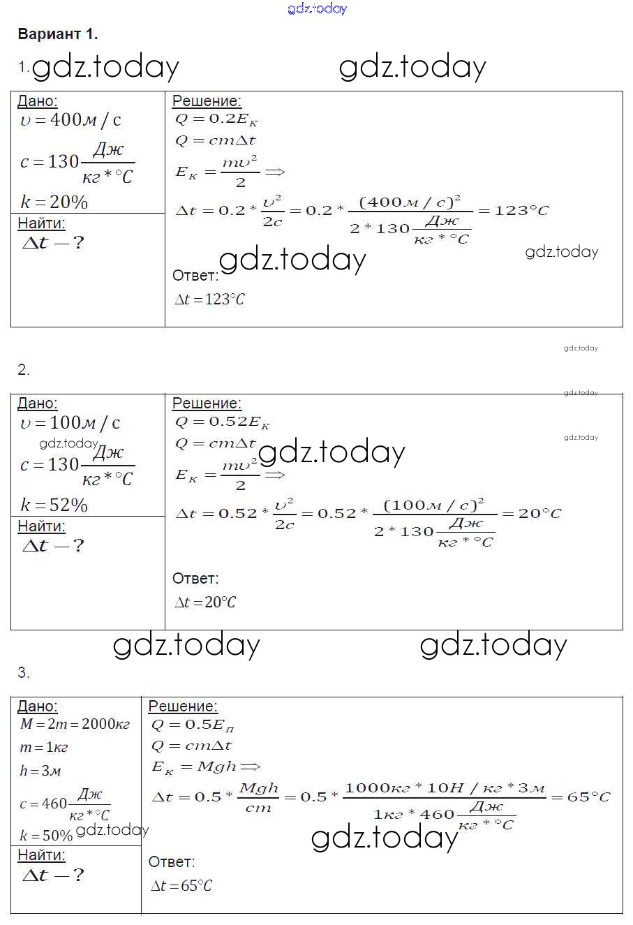На страницах сайта gdz.today вы найдете учебный и вспомогательный материал, направленный на улучшения знаний школьной программы. ГДЗ - онлайн мир знаний СР №9. Закон сохранения и превращения энергии в механических и тепловых процессах Решение к самостоятельным работам вариант-1 Контрольным и самостоятельным работам по Физике для 8 класса Громцева Экзамен УМК 2017