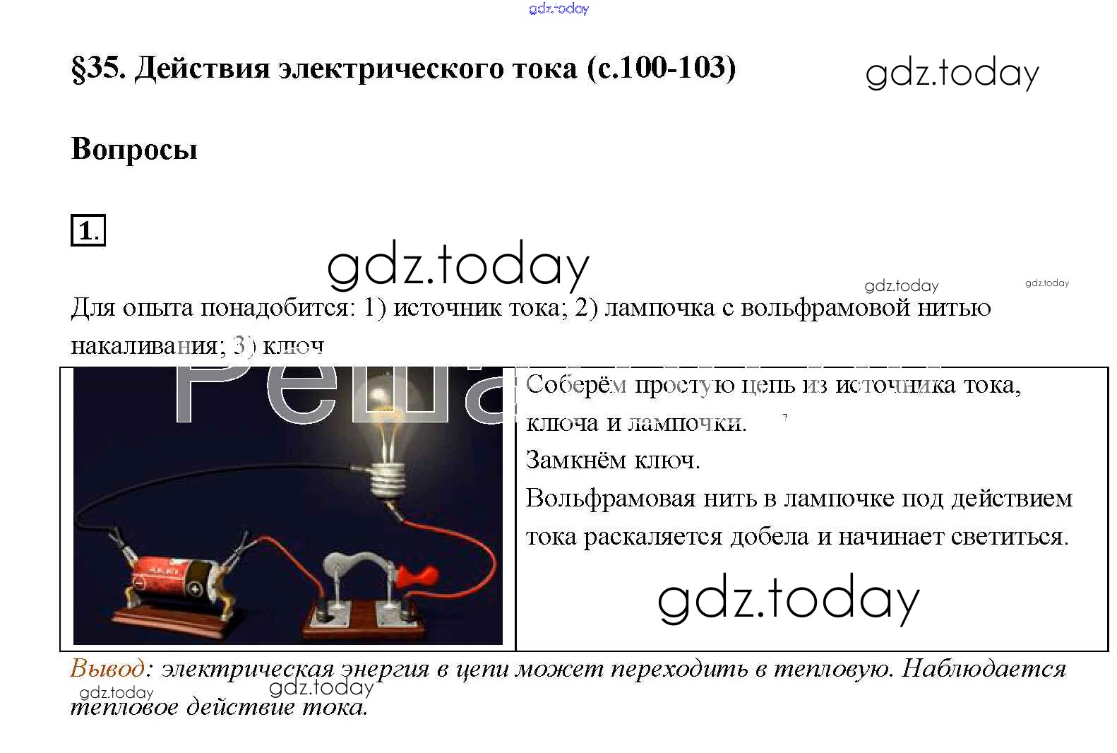 На страницах сайта gdz.today вы найдете учебный и вспомогательный материал, направленный на улучшения знаний школьной программы. ГДЗ - онлайн мир знаний Вопросы в параграфе Решение к новому изданию (бело-красный учебник) § 35 Учебнику по Физике для 8 класса Перышкин Дрофа Вертикаль 2014