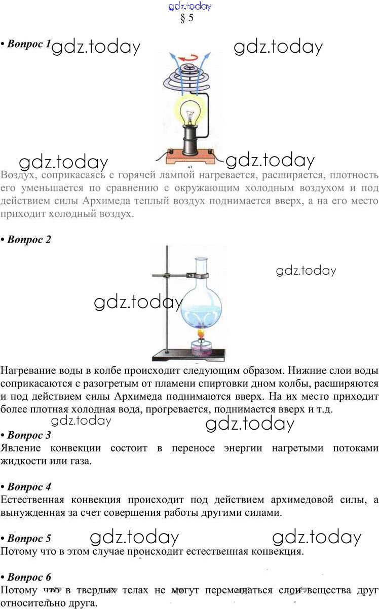 Ответы к Вопросы в параграфе Решение к новому изданию (бело-красный учебник) § 5 Учебнику по Физике для 8 класса Перышкин Дрофа Вертикаль 2014