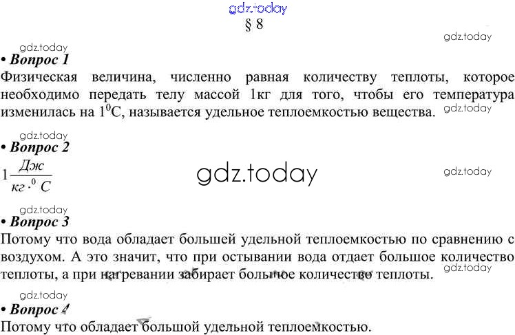 На страницах сайта gdz.today вы найдете учебный и вспомогательный материал, направленный на улучшения знаний школьной программы. ГДЗ - онлайн мир знаний Вопросы в параграфе Решение к новому изданию (бело-красный учебник) § 8 Учебнику по Физике для 8 класса Перышкин Дрофа Вертикаль 2014