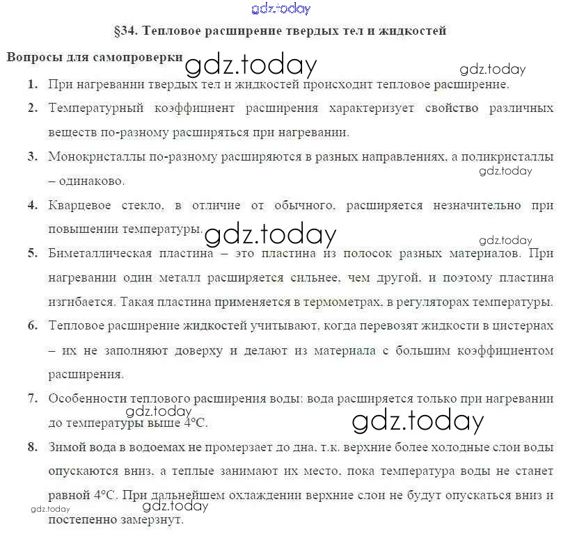 На страницах сайта gdz.today вы найдете учебный и вспомогательный материал, направленный на улучшения знаний школьной программы. ГДЗ - онлайн мир знаний Решение к параграфам § 34. Тепловое расширение твердых тел и жидкостей Учебнику по Физике для 8 класса Пурышева, Важеевская Дрофа Вертикаль 2017