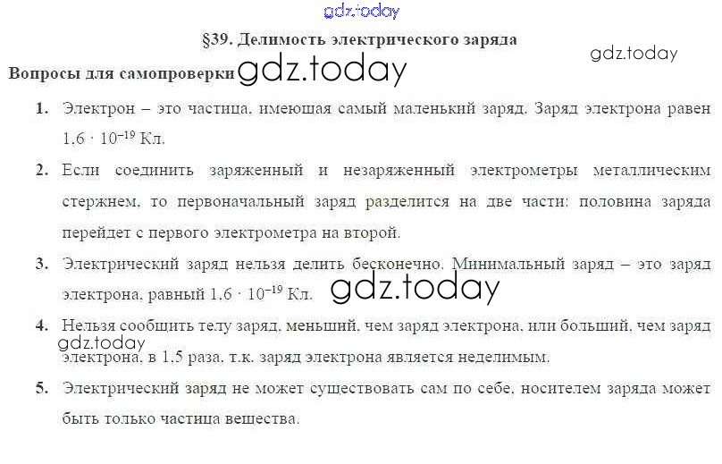 На страницах сайта gdz.today вы найдете учебный и вспомогательный материал, направленный на улучшения знаний школьной программы. ГДЗ - онлайн мир знаний Решение к параграфам § 39. Делимость электрического заряда Учебнику по Физике для 8 класса Пурышева, Важеевская Дрофа Вертикаль 2017