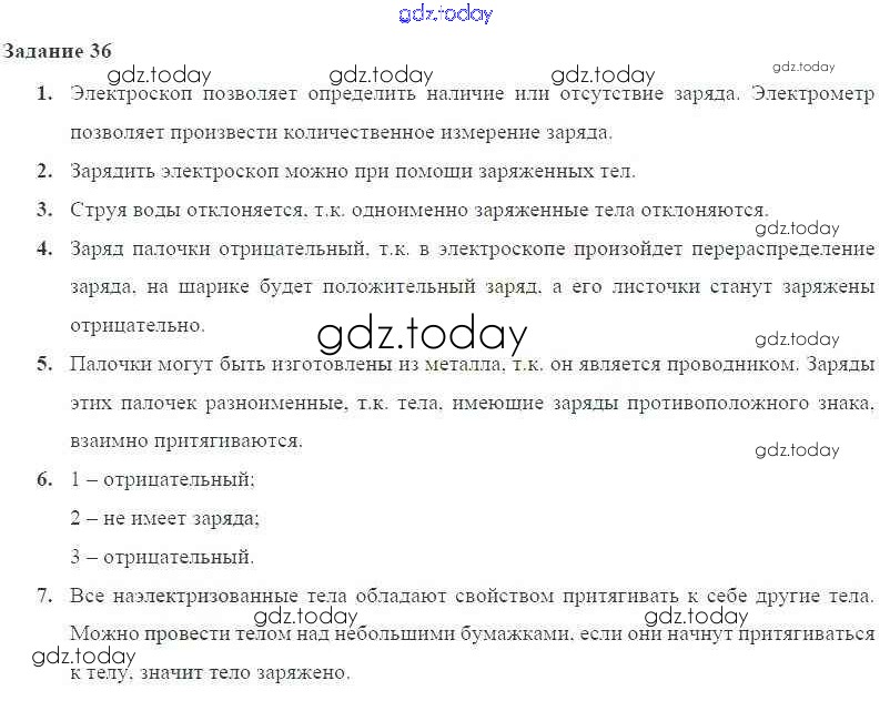 На страницах сайта gdz.today вы найдете учебный и вспомогательный материал, направленный на улучшения знаний школьной программы. ГДЗ - онлайн мир знаний Решение к заданиям № 36 Учебнику по Физике для 8 класса Пурышева, Важеевская Дрофа Вертикаль 2017