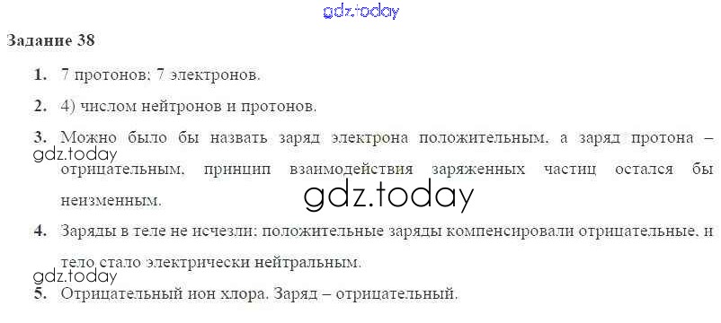 На страницах сайта gdz.today вы найдете учебный и вспомогательный материал, направленный на улучшения знаний школьной программы. ГДЗ - онлайн мир знаний Решение к заданиям № 38 Учебнику по Физике для 8 класса Пурышева, Важеевская Дрофа Вертикаль 2017