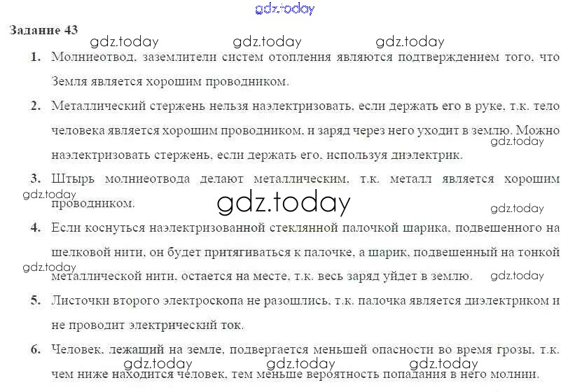 На страницах сайта gdz.today вы найдете учебный и вспомогательный материал, направленный на улучшения знаний школьной программы. ГДЗ - онлайн мир знаний Решение к заданиям № 43 Учебнику по Физике для 8 класса Пурышева, Важеевская Дрофа Вертикаль 2017