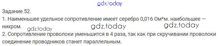 На страницах сайта gdz.today вы найдете учебный и вспомогательный материал, направленный на улучшения знаний школьной программы. ГДЗ - онлайн мир знаний Решение к заданиям № 52 Учебнику по Физике для 8 класса Пурышева, Важеевская Дрофа Вертикаль 2017