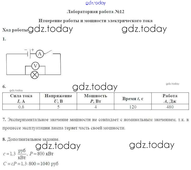 На страницах сайта gdz.today вы найдете учебный и вспомогательный материал, направленный на улучшения знаний школьной программы. ГДЗ - онлайн мир знаний Решение к лабораторным работам ЛР №12. Измерение работы и мощности электрического тока Учебнику по Физике для 8 класса Пурышева, Важеевская Дрофа Вертикаль 2017