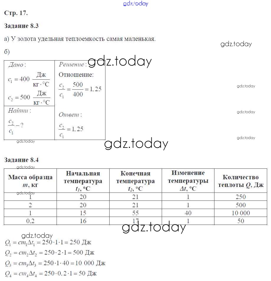 На страницах сайта gdz.today вы найдете учебный и вспомогательный материал, направленный на улучшения знаний школьной программы. ГДЗ - онлайн мир знаний Страницы (решение) 17 Рабочей тетради по Физике для 8 класса Ханнанова Дрофа Вертикаль 2017