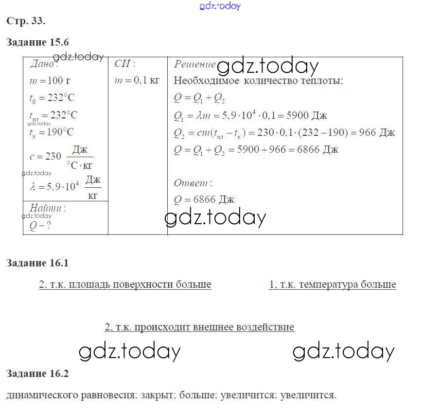 На страницах сайта gdz.today вы найдете учебный и вспомогательный материал, направленный на улучшения знаний школьной программы. ГДЗ - онлайн мир знаний Страницы (решение) 33 Рабочей тетради по Физике для 8 класса Ханнанова Дрофа Вертикаль 2017