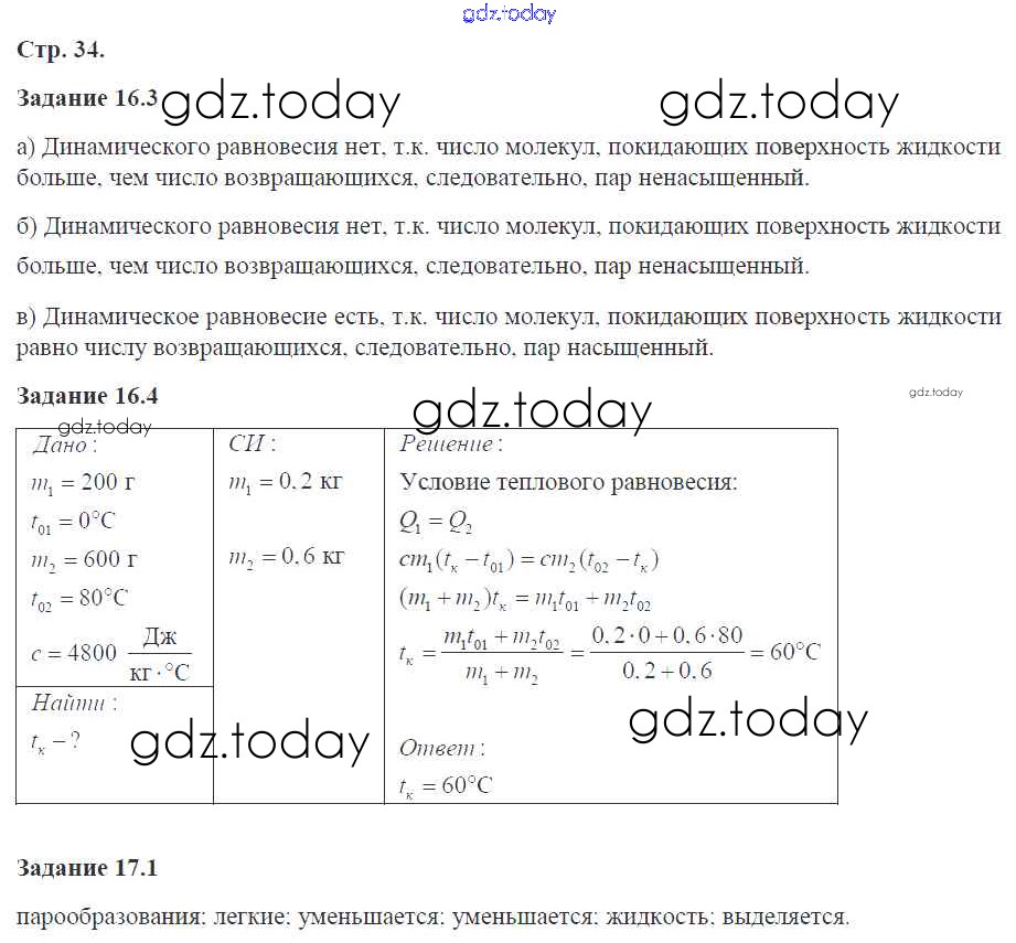 На страницах сайта gdz.today вы найдете учебный и вспомогательный материал, направленный на улучшения знаний школьной программы. ГДЗ - онлайн мир знаний Страницы (решение) 34 Рабочей тетради по Физике для 8 класса Ханнанова Дрофа Вертикаль 2017
