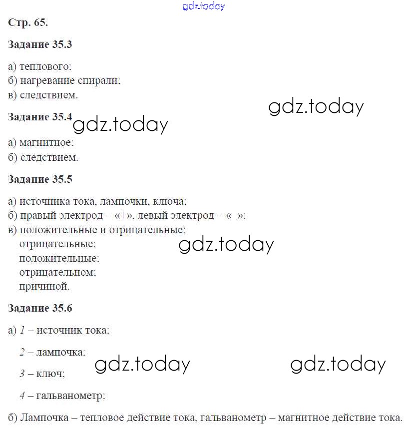 На страницах сайта gdz.today вы найдете учебный и вспомогательный материал, направленный на улучшения знаний школьной программы. ГДЗ - онлайн мир знаний Страницы (решение) 65 Рабочей тетради по Физике для 8 класса Ханнанова Дрофа Вертикаль 2017