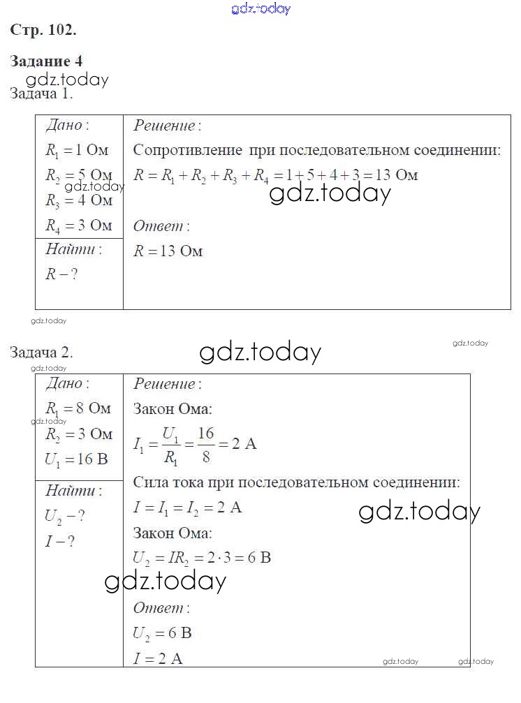 На страницах сайта gdz.today вы найдете учебный и вспомогательный материал, направленный на улучшения знаний школьной программы. ГДЗ - онлайн мир знаний Страницы (решение) 102 Рабочей тетради по Физике для 8 класса Перышкин Экзамен УМК 2017