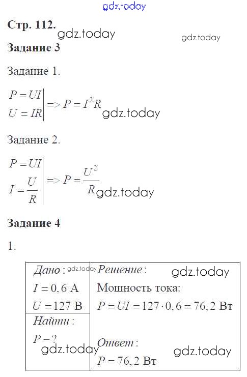 Ответы к Страницы (решение) 112 Рабочей тетради по Физике для 8 класса Перышкин Экзамен УМК 2017