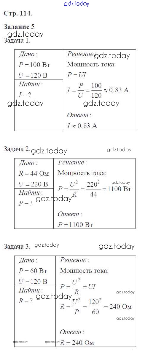 Ответы к Страницы (решение) 114 Рабочей тетради по Физике для 8 класса Перышкин Экзамен УМК 2017
