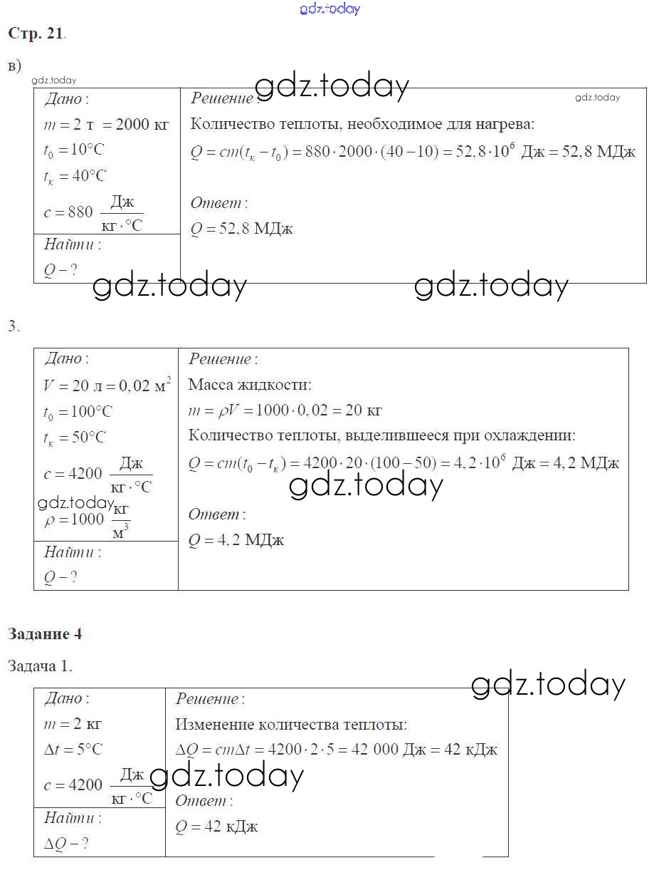 Ответы к Страницы (решение) 21 Рабочей тетради по Физике для 8 класса Перышкин Экзамен УМК 2017