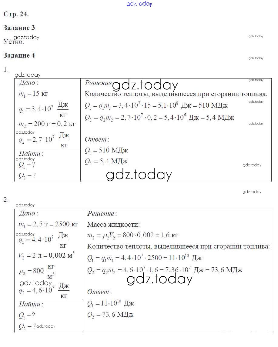 Ответы к Страницы (решение) 24 Рабочей тетради по Физике для 8 класса Перышкин Экзамен УМК 2017
