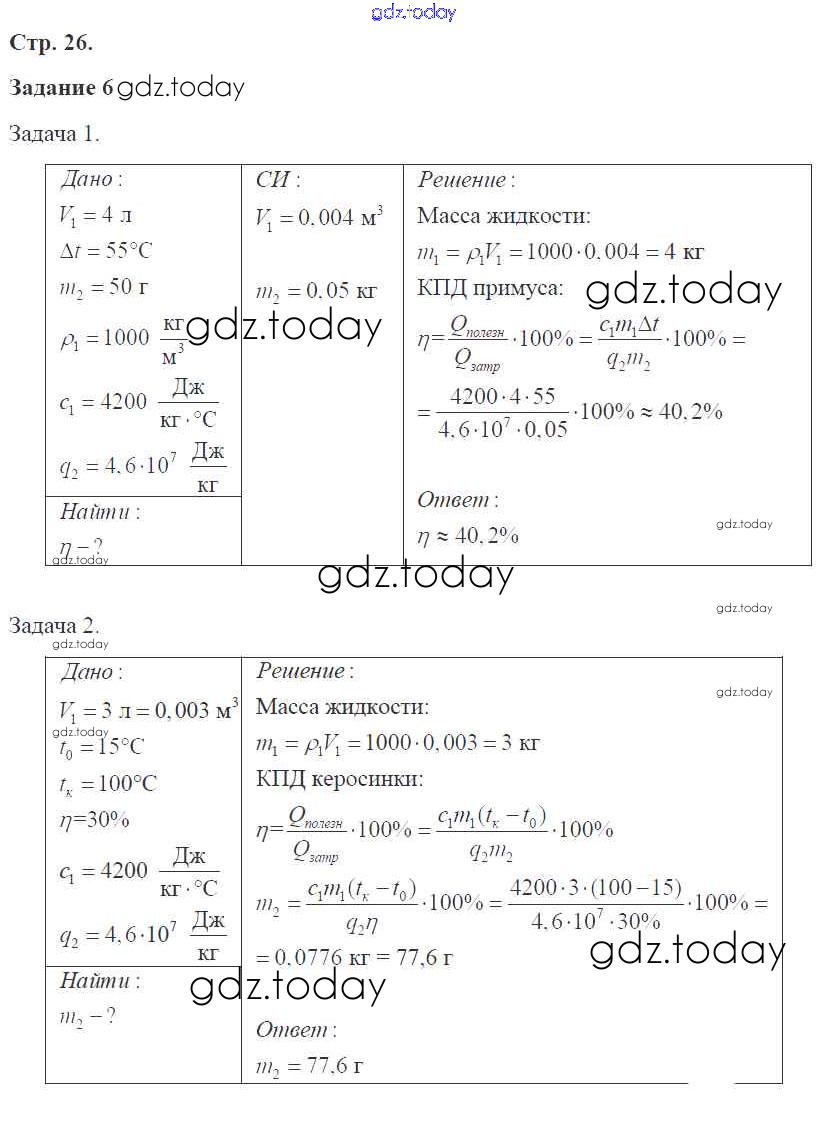 Ответы к Страницы (решение) 26 Рабочей тетради по Физике для 8 класса Перышкин Экзамен УМК 2017