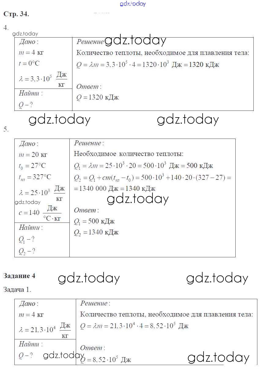 Ответы к Страницы (решение) 34 Рабочей тетради по Физике для 8 класса Перышкин Экзамен УМК 2017