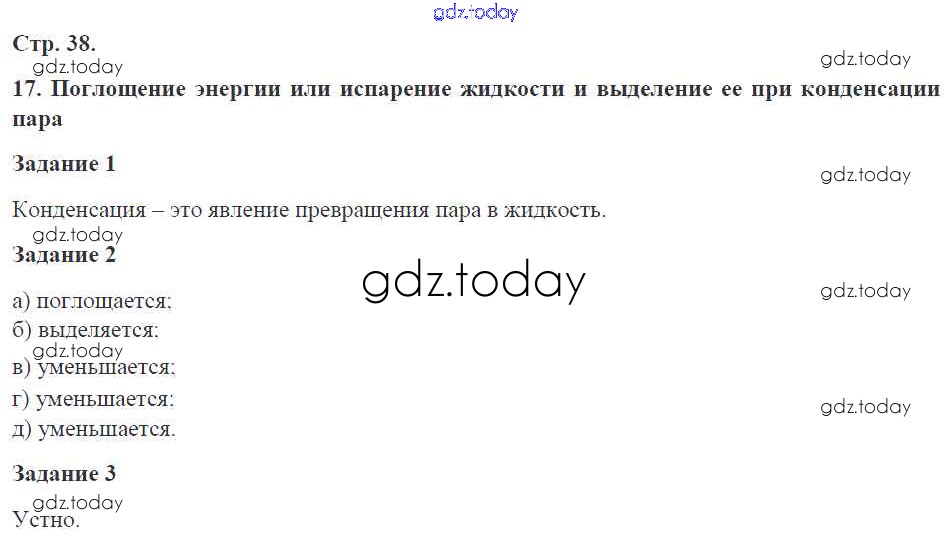 На страницах сайта gdz.today вы найдете учебный и вспомогательный материал, направленный на улучшения знаний школьной программы. ГДЗ - онлайн мир знаний Страницы (решение) 38 Рабочей тетради по Физике для 8 класса Перышкин Экзамен УМК 2017
