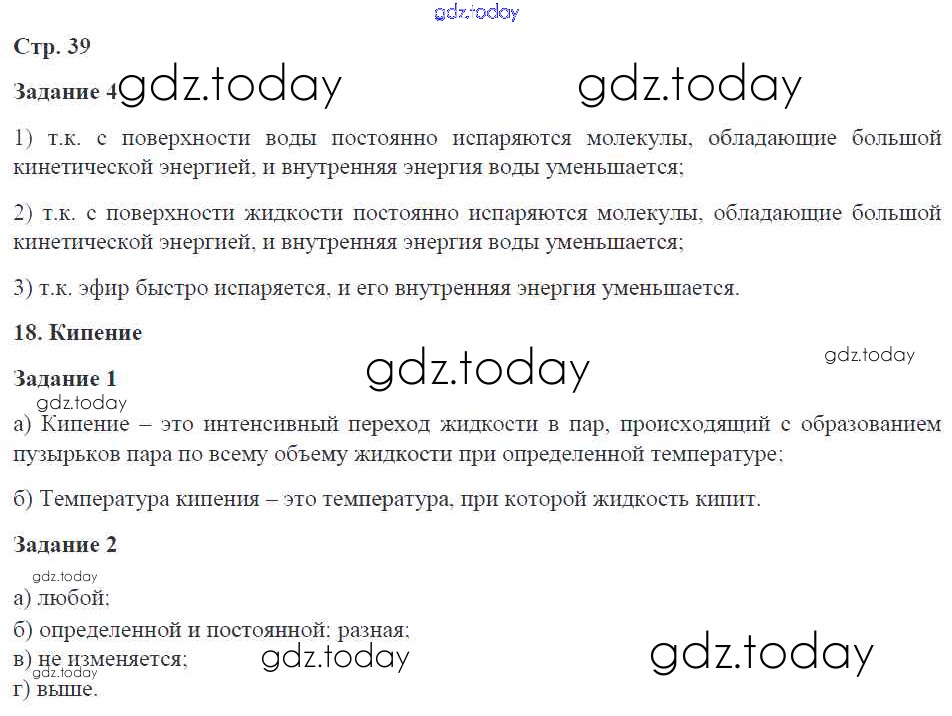 На страницах сайта gdz.today вы найдете учебный и вспомогательный материал, направленный на улучшения знаний школьной программы. ГДЗ - онлайн мир знаний Страницы (решение) 39 Рабочей тетради по Физике для 8 класса Перышкин Экзамен УМК 2017