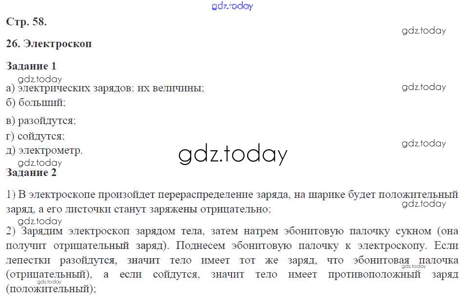 На страницах сайта gdz.today вы найдете учебный и вспомогательный материал, направленный на улучшения знаний школьной программы. ГДЗ - онлайн мир знаний Страницы (решение) 58 Рабочей тетради по Физике для 8 класса Перышкин Экзамен УМК 2017