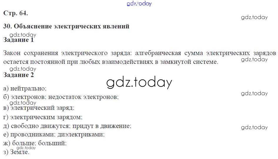 На страницах сайта gdz.today вы найдете учебный и вспомогательный материал, направленный на улучшения знаний школьной программы. ГДЗ - онлайн мир знаний Страницы (решение) 64 Рабочей тетради по Физике для 8 класса Перышкин Экзамен УМК 2017