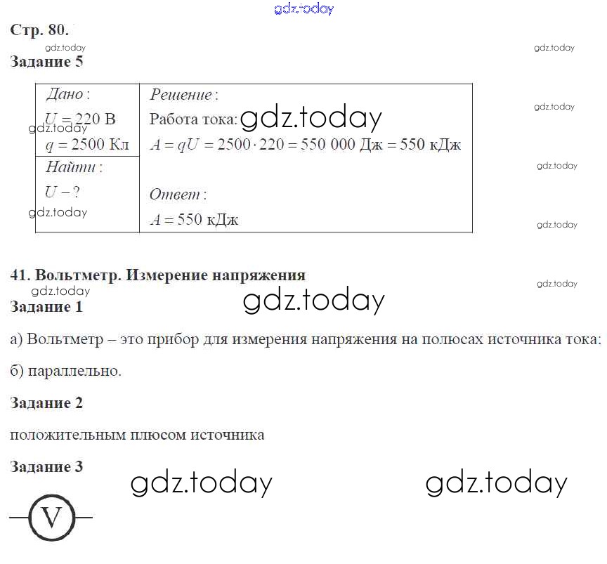 На страницах сайта gdz.today вы найдете учебный и вспомогательный материал, направленный на улучшения знаний школьной программы. ГДЗ - онлайн мир знаний Страницы (решение) 80 Рабочей тетради по Физике для 8 класса Перышкин Экзамен УМК 2017
