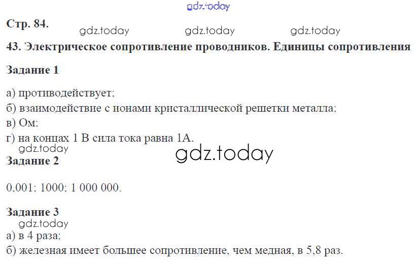На страницах сайта gdz.today вы найдете учебный и вспомогательный материал, направленный на улучшения знаний школьной программы. ГДЗ - онлайн мир знаний Страницы (решение) 84 Рабочей тетради по Физике для 8 класса Перышкин Экзамен УМК 2017