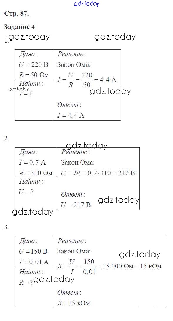 Ответы к Страницы (решение) 87 Рабочей тетради по Физике для 8 класса Перышкин Экзамен УМК 2017
