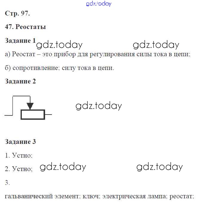 На страницах сайта gdz.today вы найдете учебный и вспомогательный материал, направленный на улучшения знаний школьной программы. ГДЗ - онлайн мир знаний Страницы (решение) 97 Рабочей тетради по Физике для 8 класса Перышкин Экзамен УМК 2017