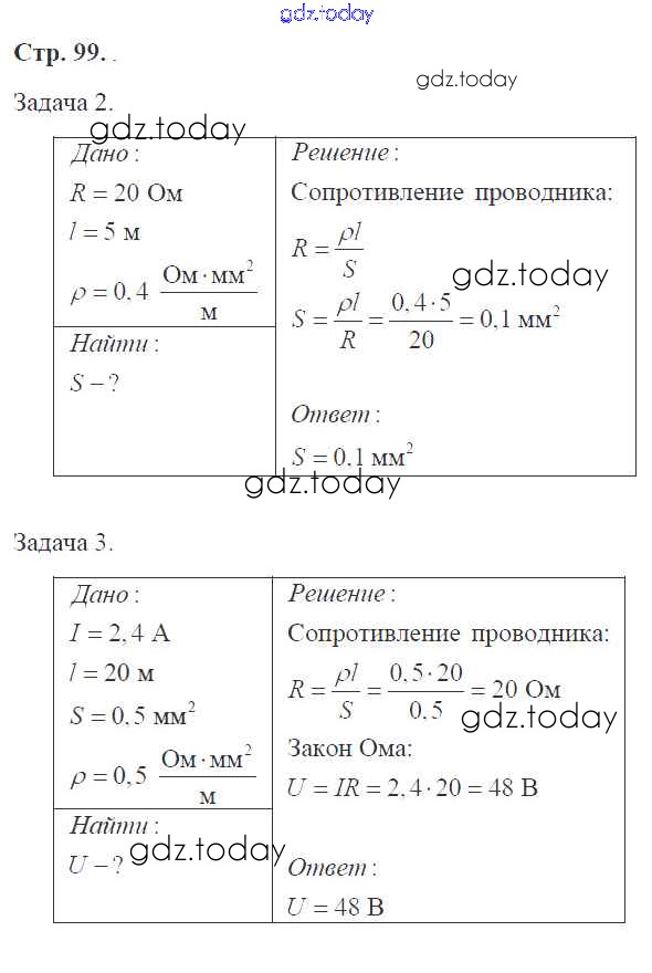 Ответы к Страницы (решение) 99 Рабочей тетради по Физике для 8 класса Перышкин Экзамен УМК 2017