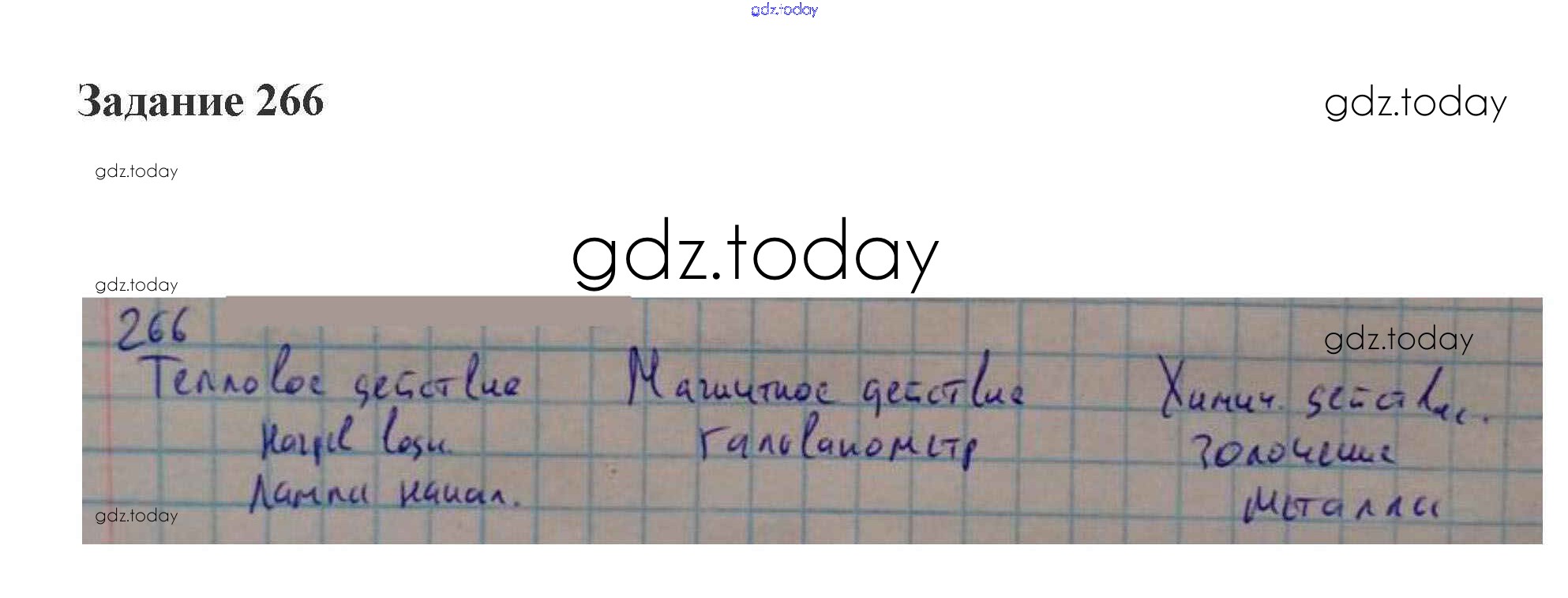 На страницах сайта gdz.today вы найдете учебный и вспомогательный материал, направленный на улучшения знаний школьной программы. ГДЗ - онлайн мир знаний Решение к заданиям 266 Рабочей тетради по Физике для 8 класса Пурышева, Важеевская Дрофа 2015