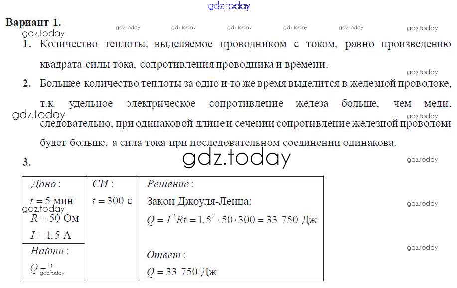 На страницах сайта gdz.today вы найдете учебный и вспомогательный материал, направленный на улучшения знаний школьной программы. ГДЗ - онлайн мир знаний СР-№53 Решение к самостоятельным работам Вариант-1 Самостоятельным и контрольным работам по Физике для 8 класса Марон Дрофа Вертикаль 2017