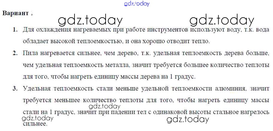 На страницах сайта gdz.today вы найдете учебный и вспомогательный материал, направленный на улучшения знаний школьной программы. ГДЗ - онлайн мир знаний СР-№8 Решение к самостоятельным работам Вариант-1 Самостоятельным и контрольным работам по Физике для 8 класса Марон Дрофа Вертикаль 2017