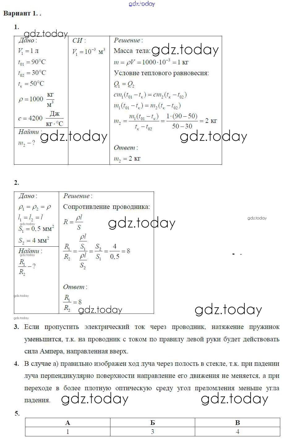 На страницах сайта gdz.today вы найдете учебный и вспомогательный материал, направленный на улучшения знаний школьной программы. ГДЗ - онлайн мир знаний КР-№5 Решение к контрольным работам Вариант-1 Самостоятельным и контрольным работам по Физике для 8 класса Марон Дрофа Вертикаль 2017