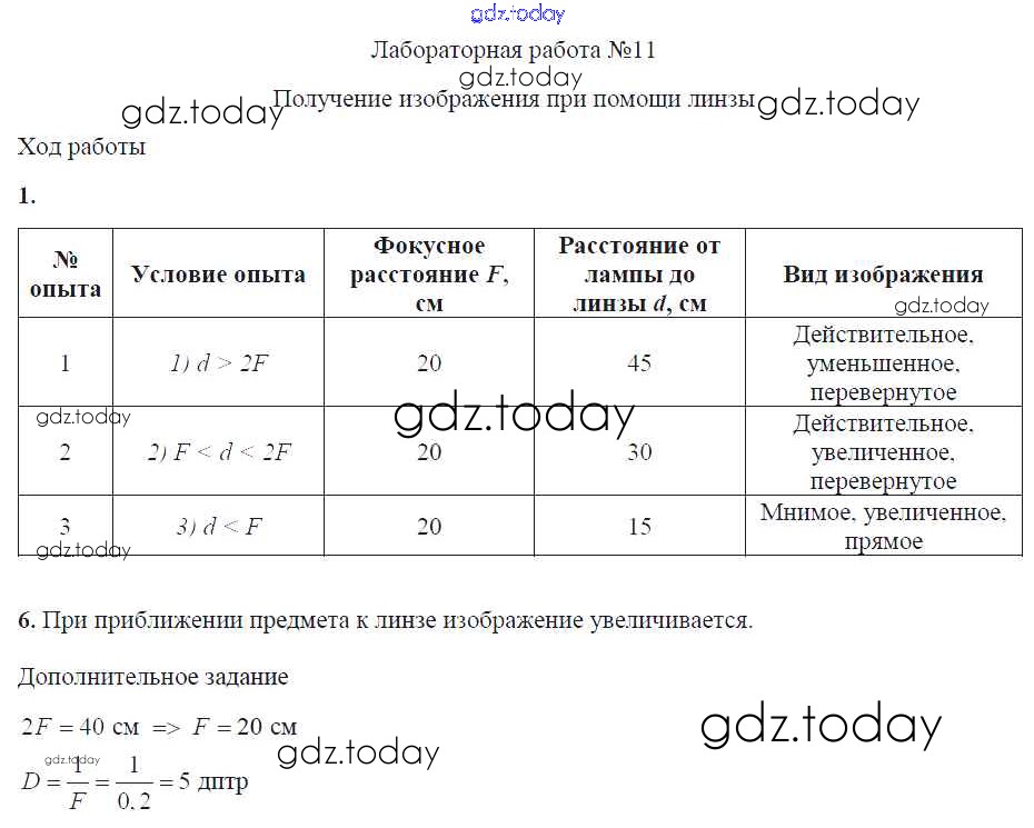 На страницах сайта gdz.today вы найдете учебный и вспомогательный материал, направленный на улучшения знаний школьной программы. ГДЗ - онлайн мир знаний Решение к лабораторным работам ЛР №11. Получение изображения при помощи линзы Тетради для лабораторных работ по Физике для 8 класса Минькова, Иванова Экзамен УМК 2014
