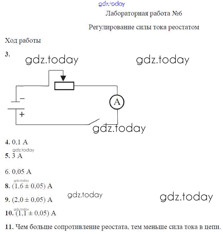 На страницах сайта gdz.today вы найдете учебный и вспомогательный материал, направленный на улучшения знаний школьной программы. ГДЗ - онлайн мир знаний Решение к лабораторным работам ЛР №6. Регулирование силы тока реостатом Тетради для лабораторных работ по Физике для 8 класса Минькова, Иванова Экзамен УМК 2014