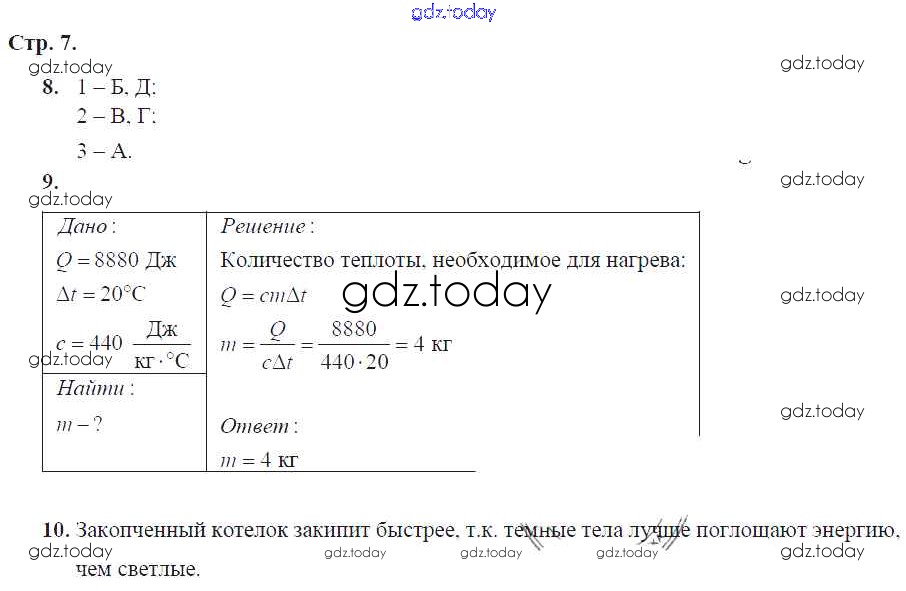 На страницах сайта gdz.today вы найдете учебный и вспомогательный материал, направленный на улучшения знаний школьной программы. ГДЗ - онлайн мир знаний Страницы (решение) 7 Тетради-экзаменатору по Физике для 8 класса Жумаев Просвещение Сферы 2012