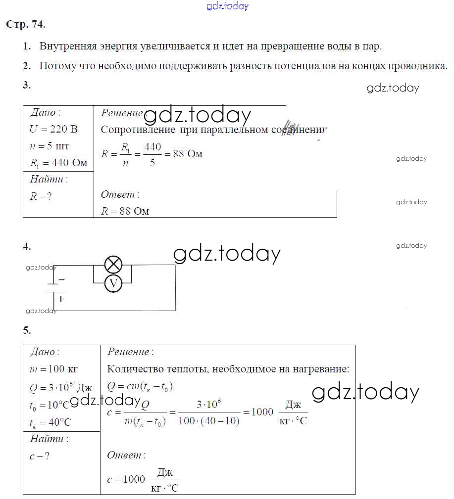 На страницах сайта gdz.today вы найдете учебный и вспомогательный материал, направленный на улучшения знаний школьной программы. ГДЗ - онлайн мир знаний Страницы (решение) 74 Тетради-экзаменатору по Физике для 8 класса Жумаев Просвещение Сферы 2012