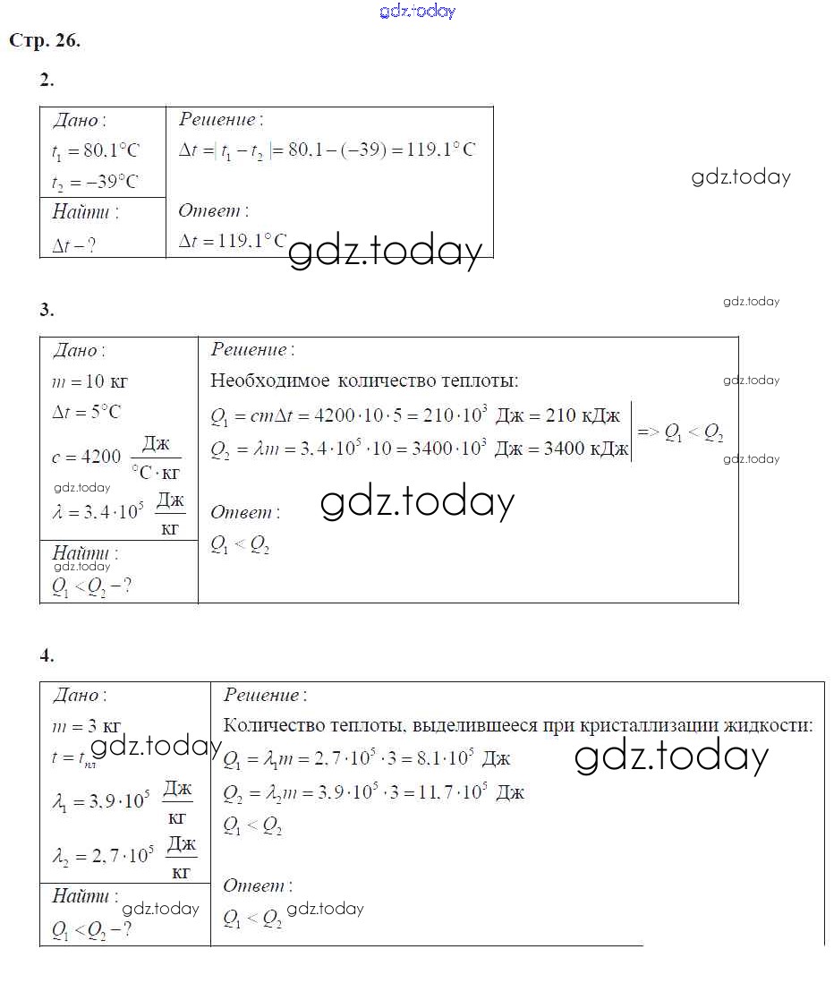 Ответы к Страницы (решение) 26 Тетради-тренажеру по Физике для 8 класса Артеменков, Белага Просвещение Сферы 2012