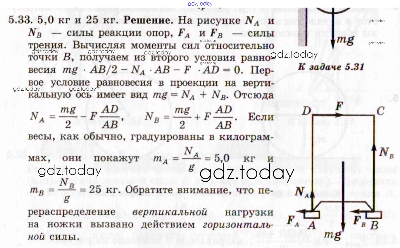На страницах сайта gdz.today вы найдете учебный и вспомогательный материал, направленный на улучшения знаний школьной программы. ГДЗ - онлайн мир знаний Решение к теме 5. Статика 5.33 Задачнику по Физике для 8-11 класса Гельфгат, Генденштейн Илекса 2021