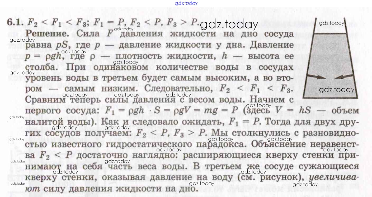 На страницах сайта gdz.today вы найдете учебный и вспомогательный материал, направленный на улучшения знаний школьной программы. ГДЗ - онлайн мир знаний Решение к теме 6. Гидростатика и аэростатика 6.1 Задачнику по Физике для 8-11 класса Гельфгат, Генденштейн Илекса 2021